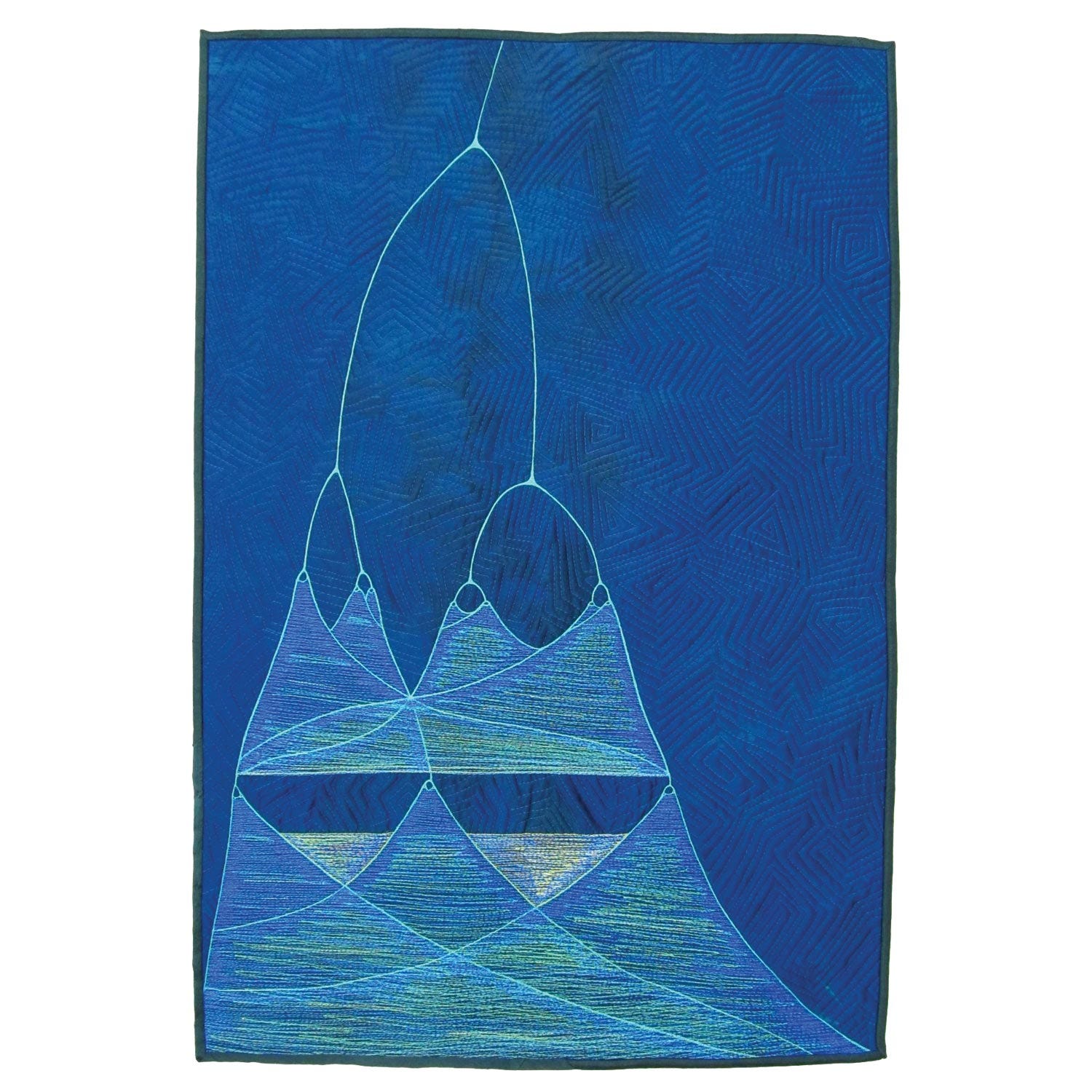 Materials/Techniques: Hand-dyed silk, cotton, polyester thread, free motion quilted.