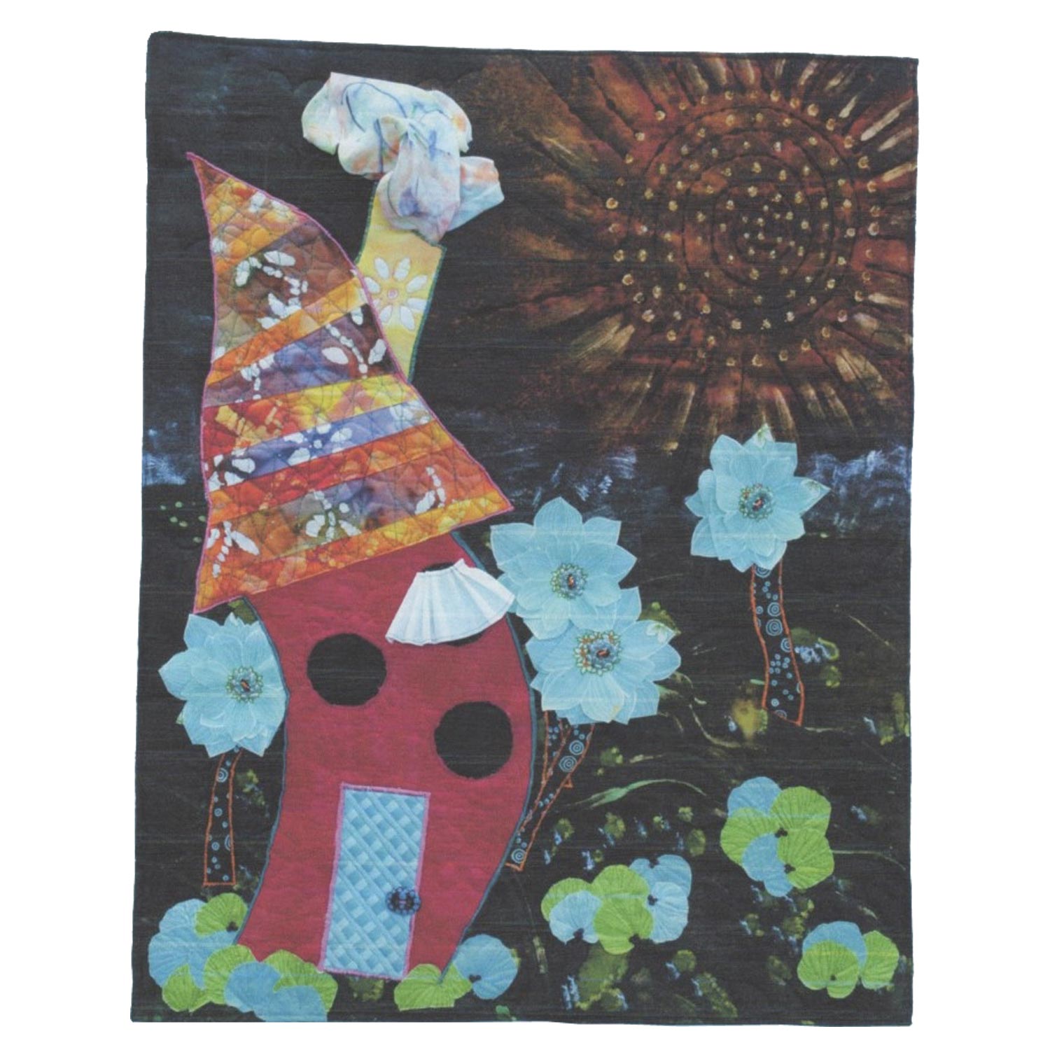 Materials/Techniques: Cotton Batiks, hand-dyed cotton, wool felt, acrylic paint & thread. I used an appliqué technique and acrylic paint to shade and highlight. Quilting adds an extra splash of texture.