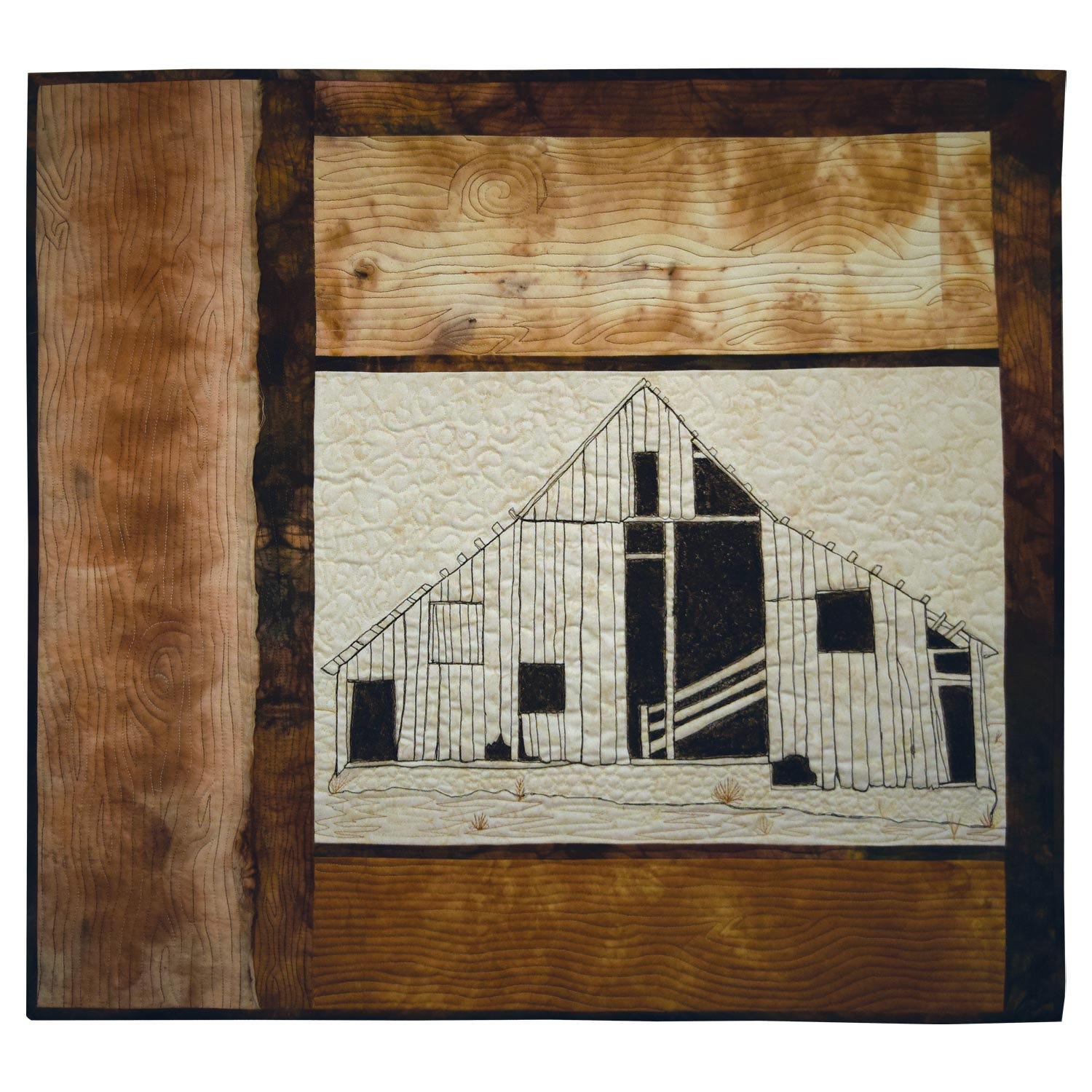 Architecture is a general term that not only can describe man made buildings but can also include the diverse structures found in nature. Combining this definition of architecture with the word texture, the artists designed and created fiber artwork on a diverse range of topics. The texture portion of the word “Architexture” is evident on these fiber pieces which share the slick finishes of windowed buildings in large cities, the varied textures one finds in a home, the diverse textures of nature, and the rough boards of an old barn on a Nebraska farmstead.