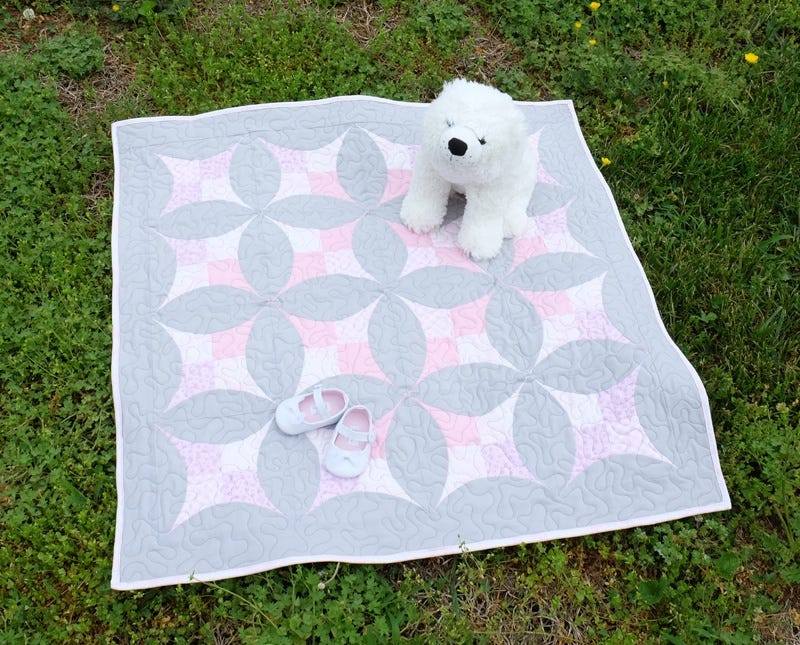 Then I sewed the quilt together and added a small border around it in grey and quilted it!