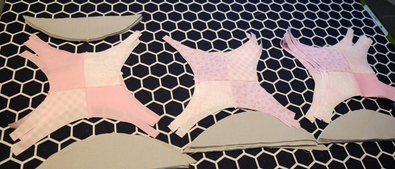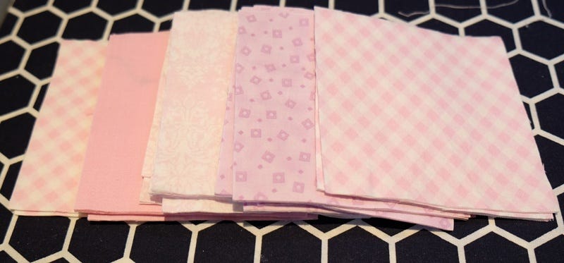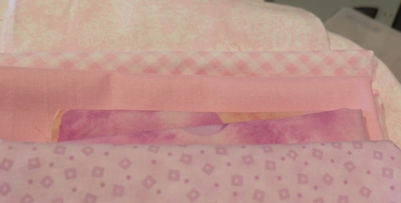 first I picked out some cute pink fabrics (I first wanted 5 but then omitted one and chose 4 instead)
