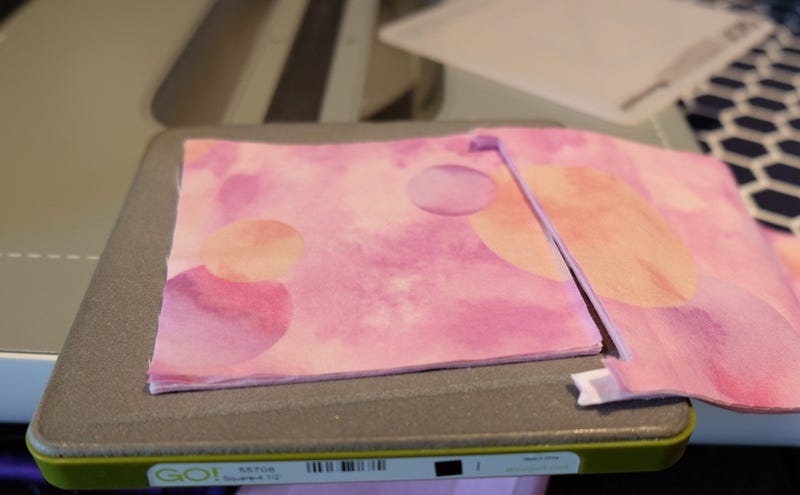 Then using the 4 1/2" die from the Qube set I cut out a bunch of squares