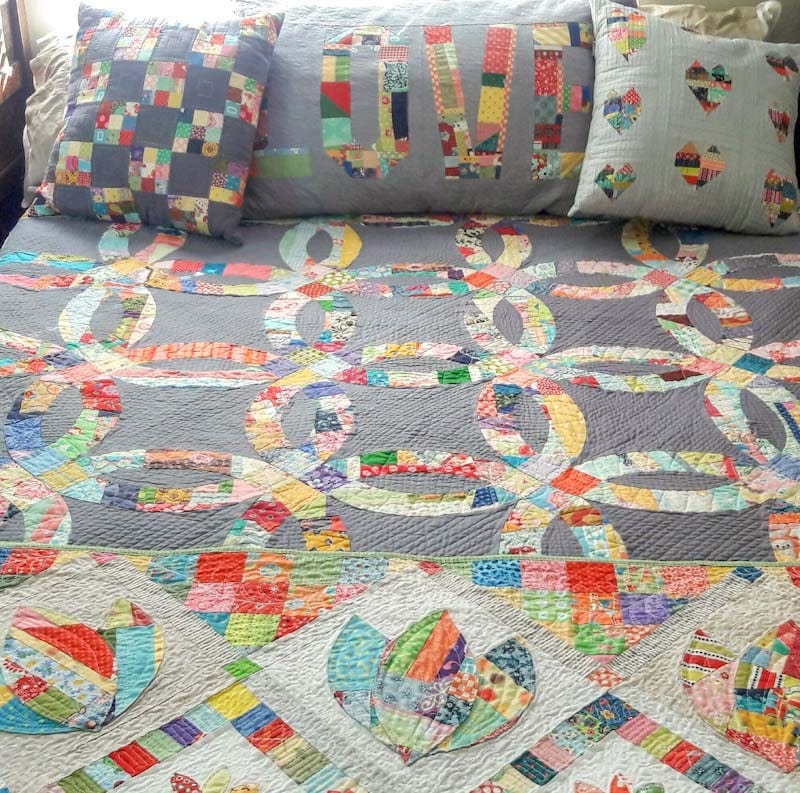 I soon found that I loved the process of making Double Wedding Ring blocks. Before I knew it, my table runner became a queen size quilt. I now sleep under it every night!