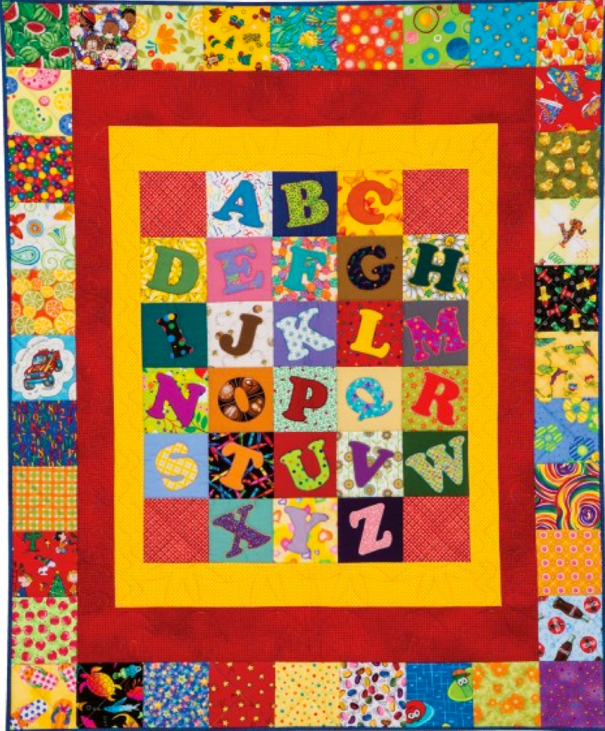 Any child would love to have this quilt to cuddle. The alphabet appliqué not only adds beauty to this easy design, it also doubles as a teaching tool for learning ABCs. Just use the Carefree Alphabet Die and the 3 strip dies for a quilt that will contain your own message of love. Combine with novelty fabrics for an I Spy Quilt!