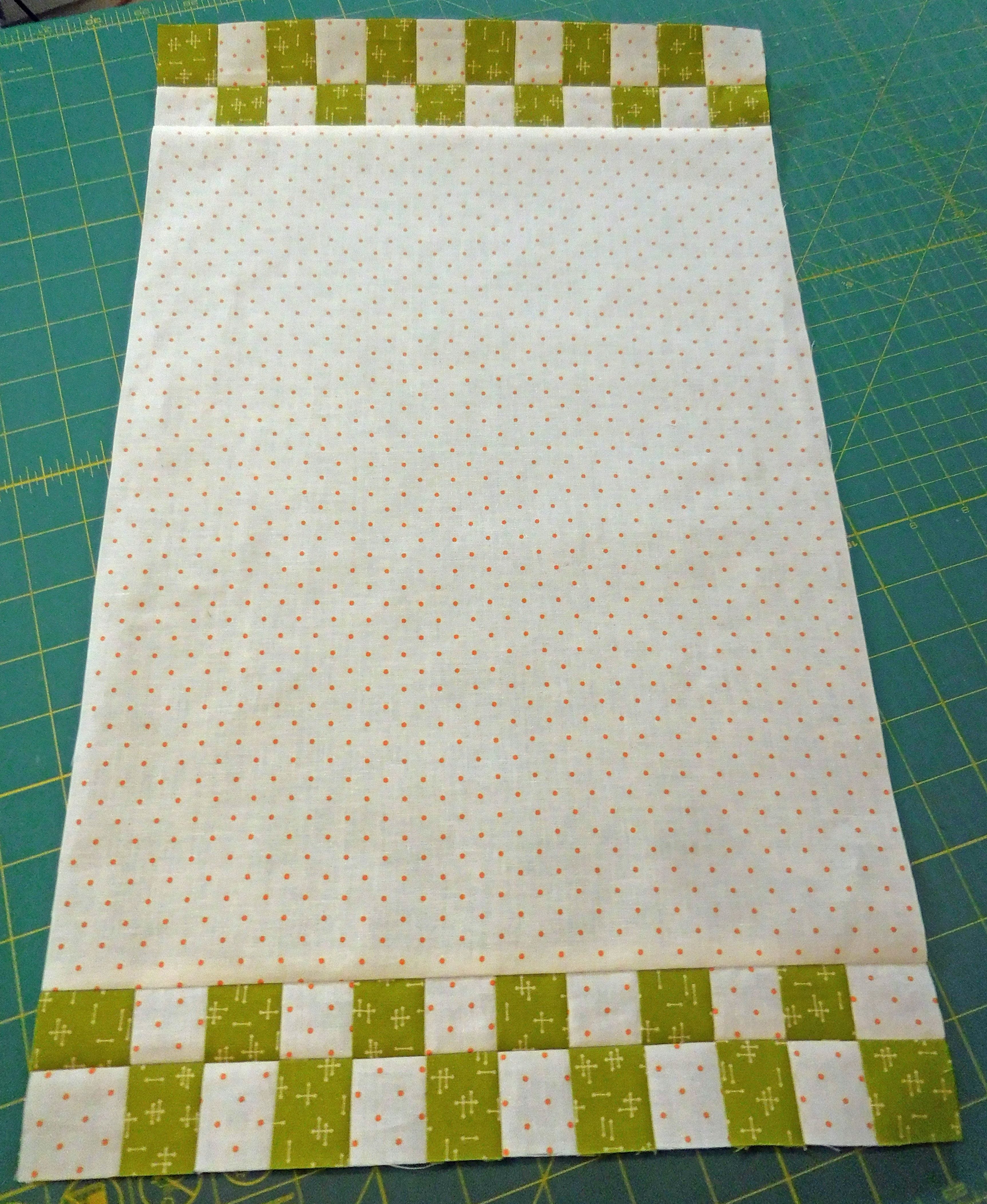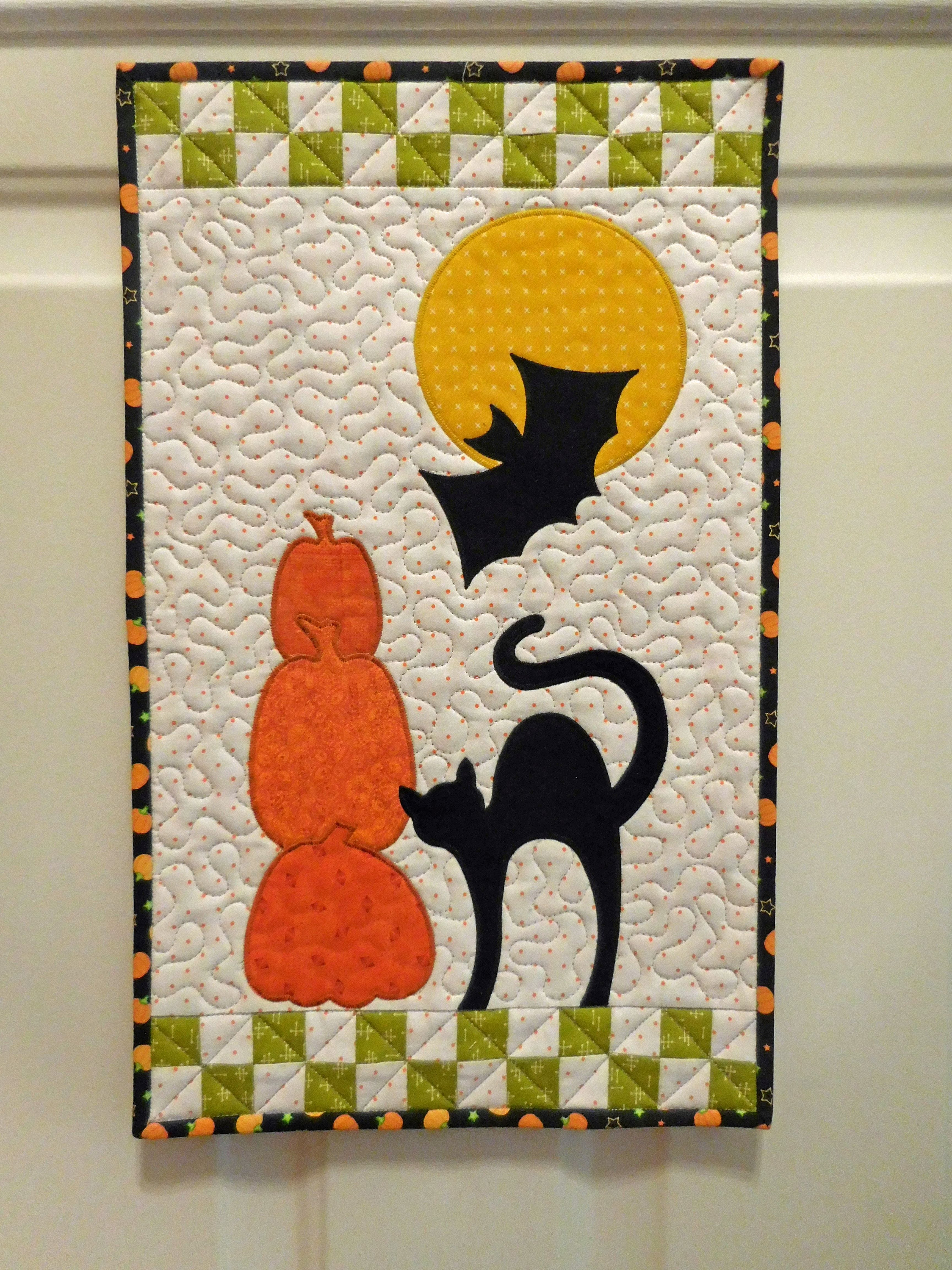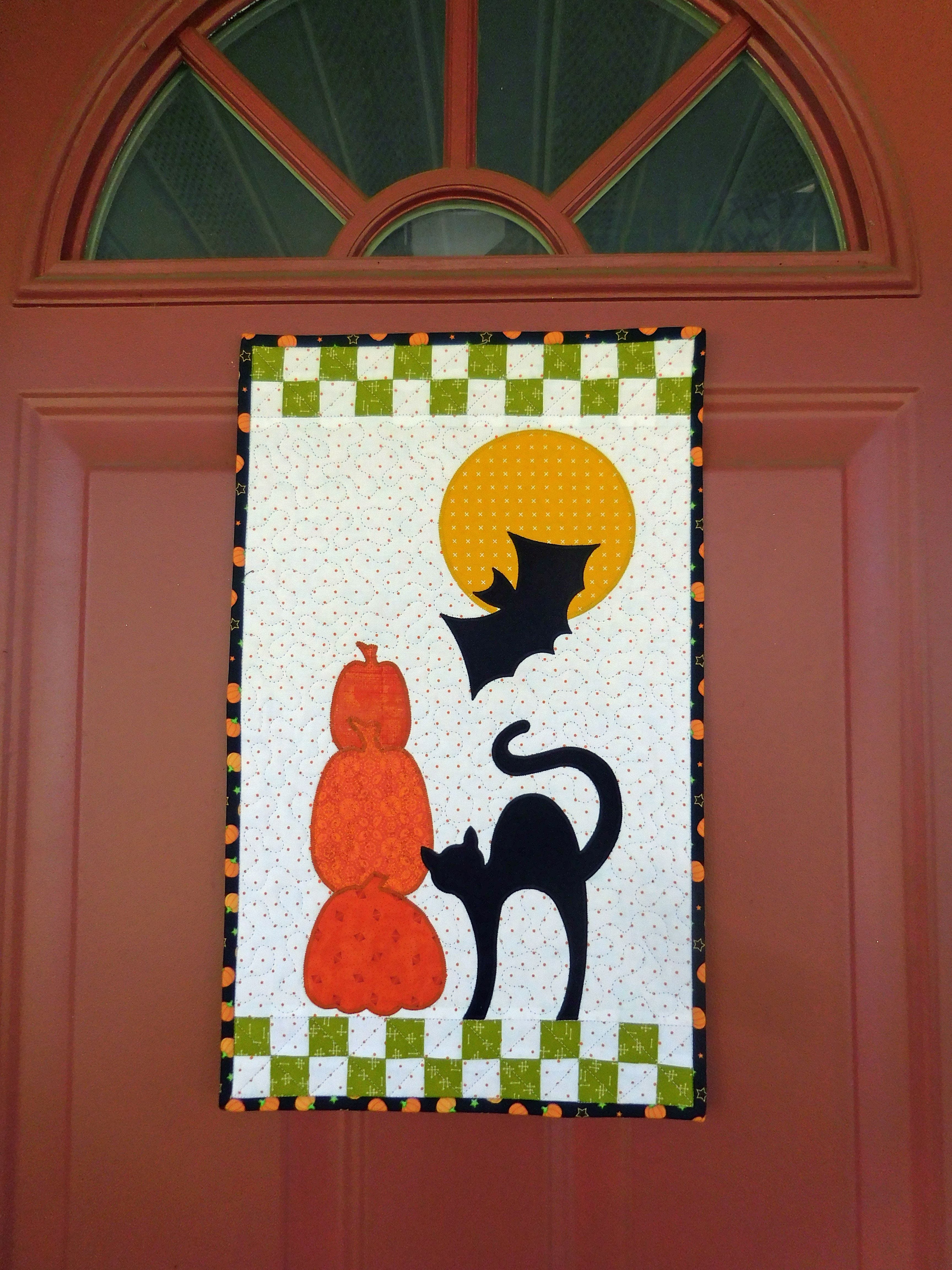Sandwich the backing, batting and wall hanging top and quilt as desired. Bind your project either using either 2 ¼” x WOF strip. I was able to bind with just one strip. But if your fabric isn’t wide enough you will need a second strip. Now it’s ready to hang either on the wall or on your door!