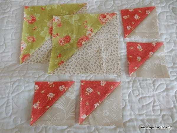 - 1/8 yard each of two fabrics for the small half-square triangles