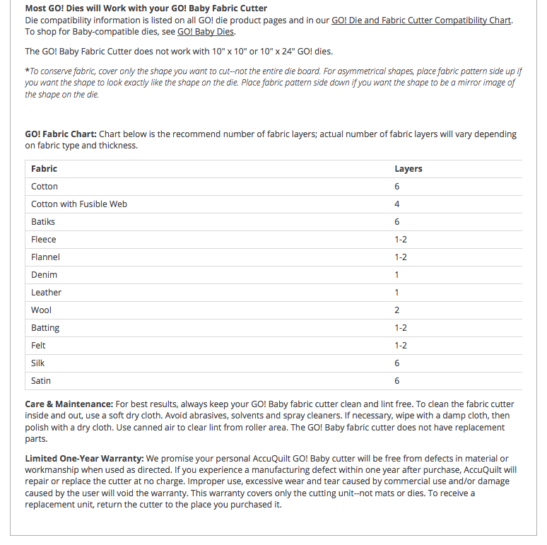 For your convenience, you can find out the number of layers recommended for various fabric types by checking the "Overview" tab for each fabric cutter page. See example below.