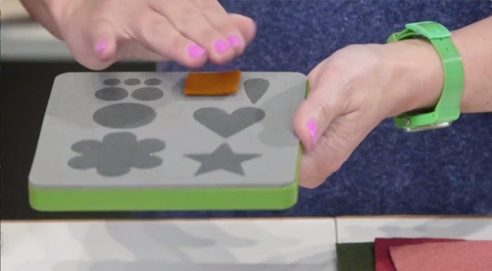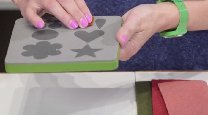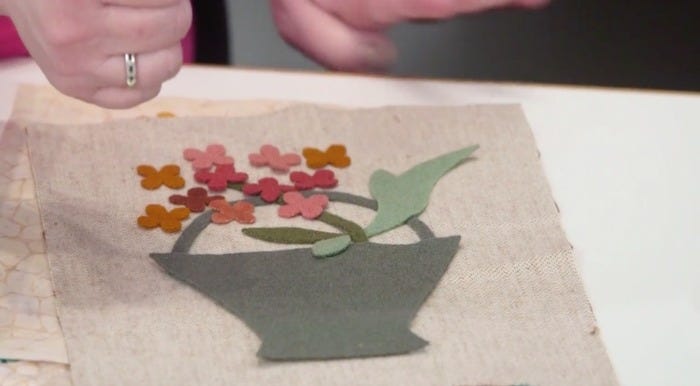 In the images below, Edyta prepares 1-2 layers of wool for the GO! Isn't that the cutest little flower? You can make your bloom as big as you like, so just keep cutting and adding flowers to your flower basket until you kick your addiction to making them! You are going to have a lot of fun cutting these little shapes, especially when you realize the pure torture you'd experience trying to cut them by hand. Your fabric scraps will also enjoy having a place to GO! See, there is no such thing as fabric waste.