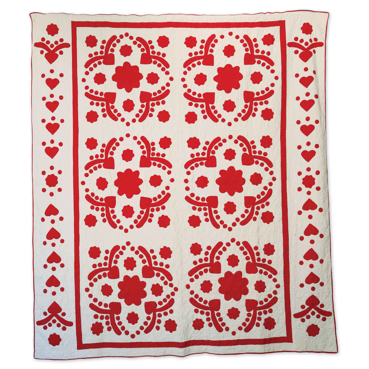 This lovely appliqué quilt has a very romantic design. Was it made for a special occasion in someone’s life?